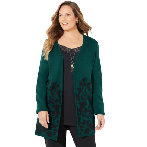 Catherines Women s Plus Size Jacquard Cardigan 5x Emerald Green Damask Border Target Very well made.