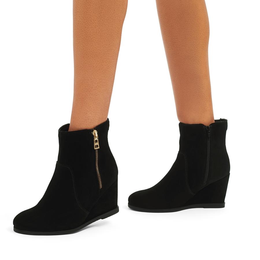 Amazon PUSBON Woman Fashion Wedge Heel Ankle Boots Nubuck Leather Platform Zipper Booties Black Ankle Bootie Very well made.