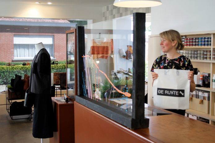 Schoenen passen tussen artistieke plexiwanden schoenenwinkel De Ruyte klaar voor heropening Sint Niklaas hln.be Very well made.