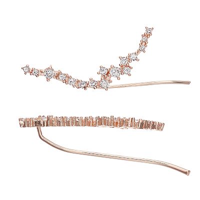 14k Gold Over Silver Rainbow Cubic Zirconia Curved Ear Climber Earrings Very well made.