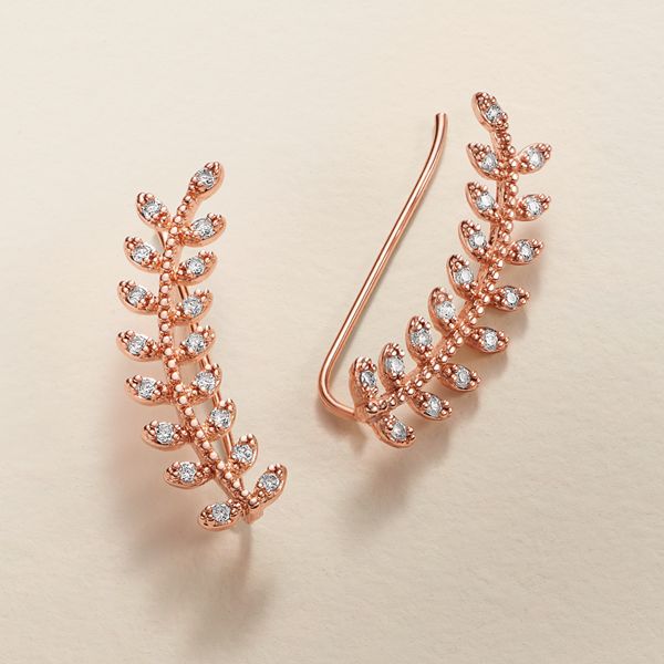 14k Gold Cubic Zirconia Leaf Ear Climber Earrings Very well made.