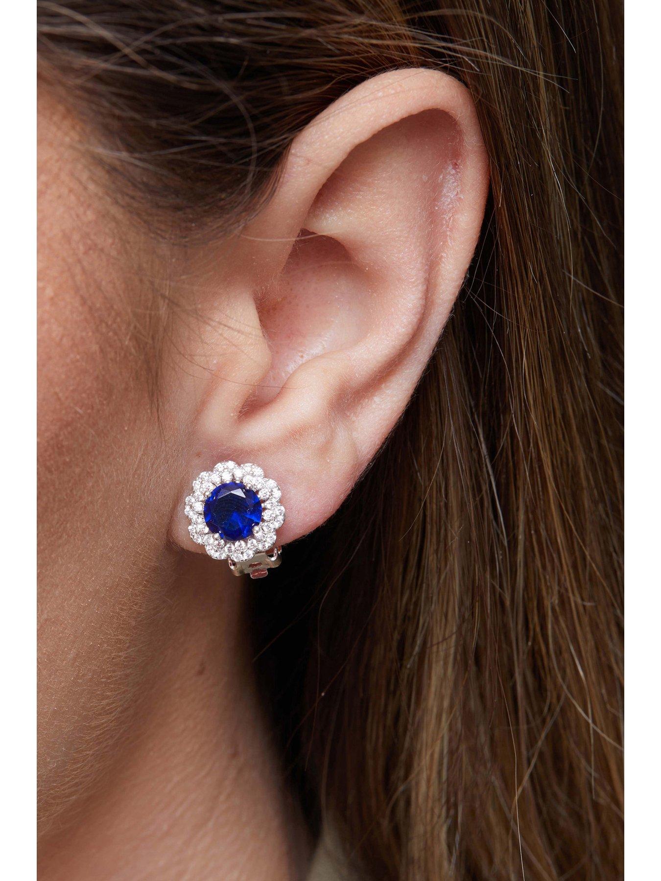 Montana Flower Clip On Blue Cubic Zirconia Earrings Very well made.