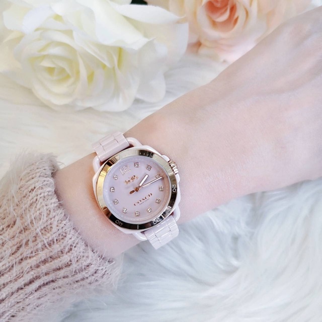 MK COACH Tatum Crystal Light Pink Ceramic Ladies Watch 14502754 Shopee Thailand Very well made.