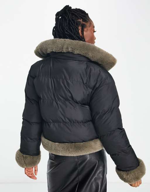 COLLUSION reversible fur and puffer jacket in grey and black Very well made.