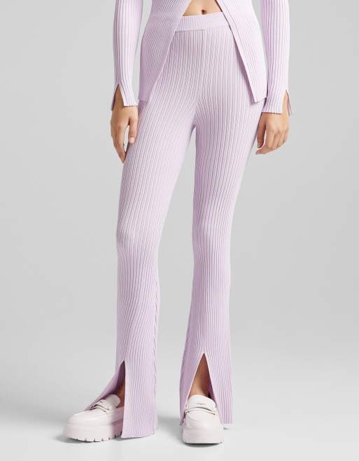 Bershka Gebreide geribbelde broek met split in lila Very well made.
