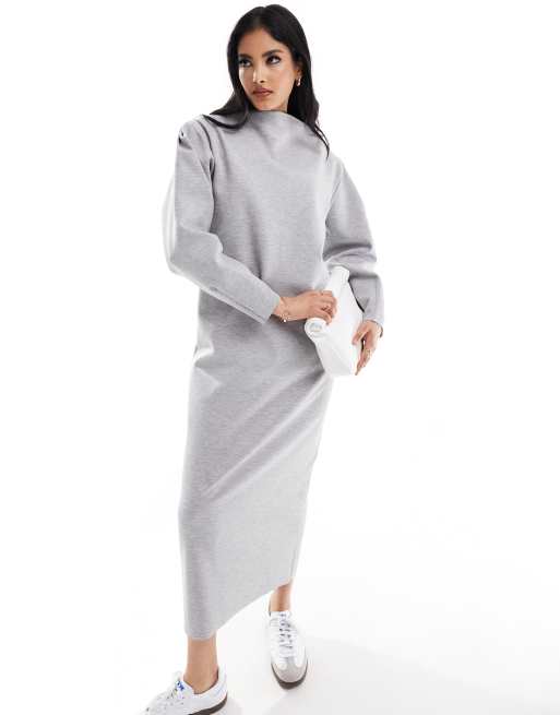 ASOS DESIGN Midi jurk van sweatstof met gedraaide boothals en lange mouwen in grijs ASOS Very well made.