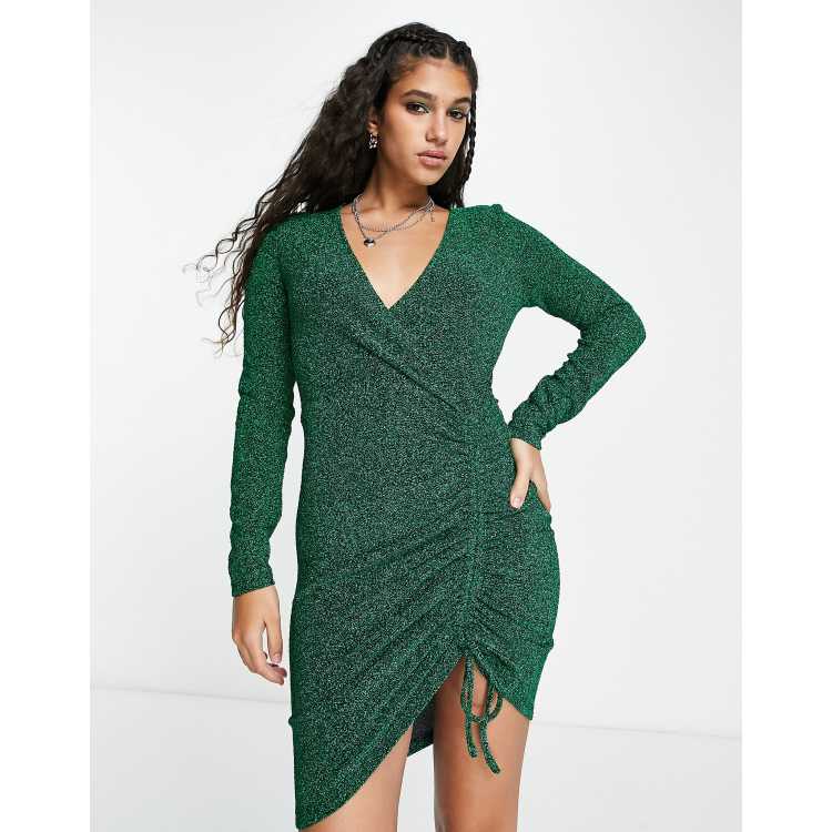 Pimkie Fluwelen midi jurk met lange mouwen gerimpeld detail in groen Cra wallonieShops Very well made.