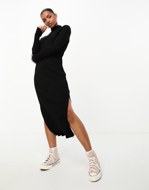 Pimkie Midi trui jurk met col en zijsplit in zwart ASOS Very well made.