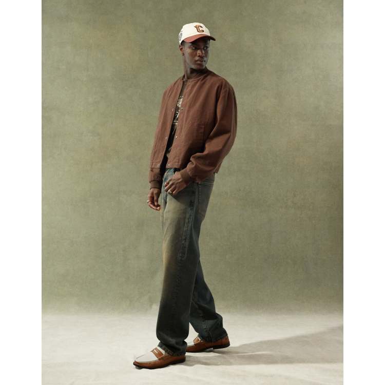 ASOS DESIGN oversized cropped bomber jacket in brown ASOS Very well made.