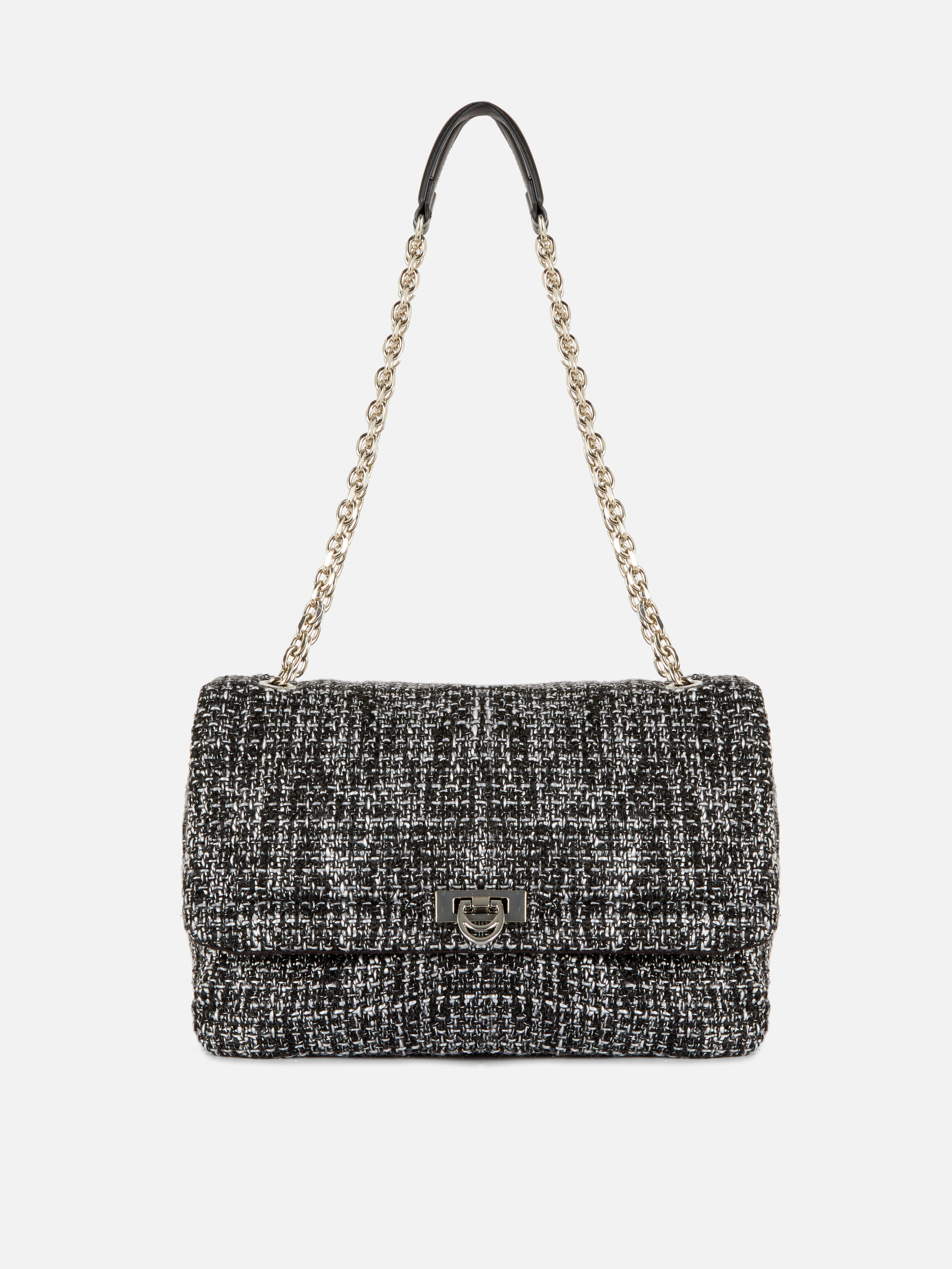 Women s Black Boucle Flap Front Crossbody Bag Primark Very well made.