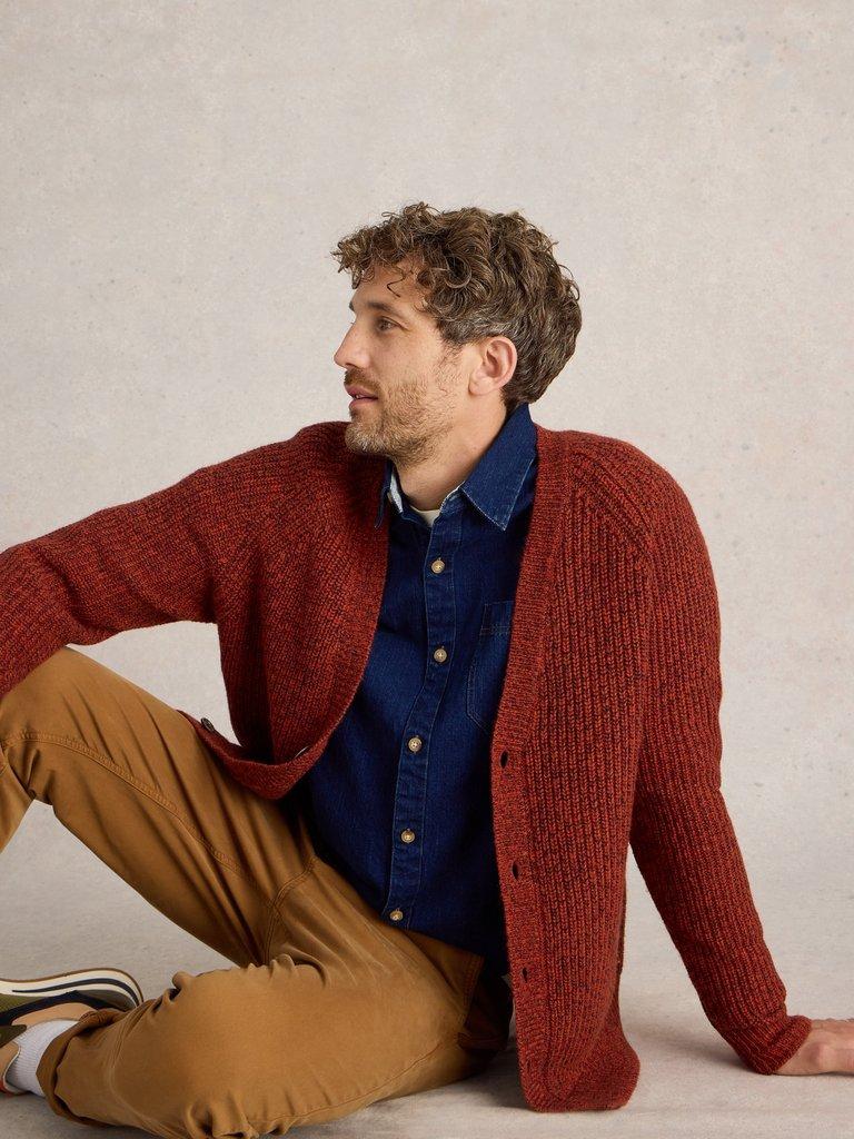 Burnt Orange Pure Lambswool V Neck Moss Stitch Cardigan Very well made.