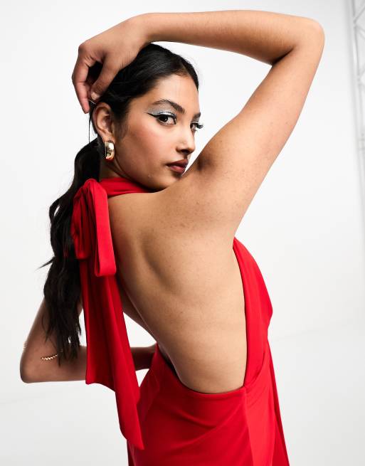 ASOS DESIGN deep plunge sash midi skater dress in red Very well made.