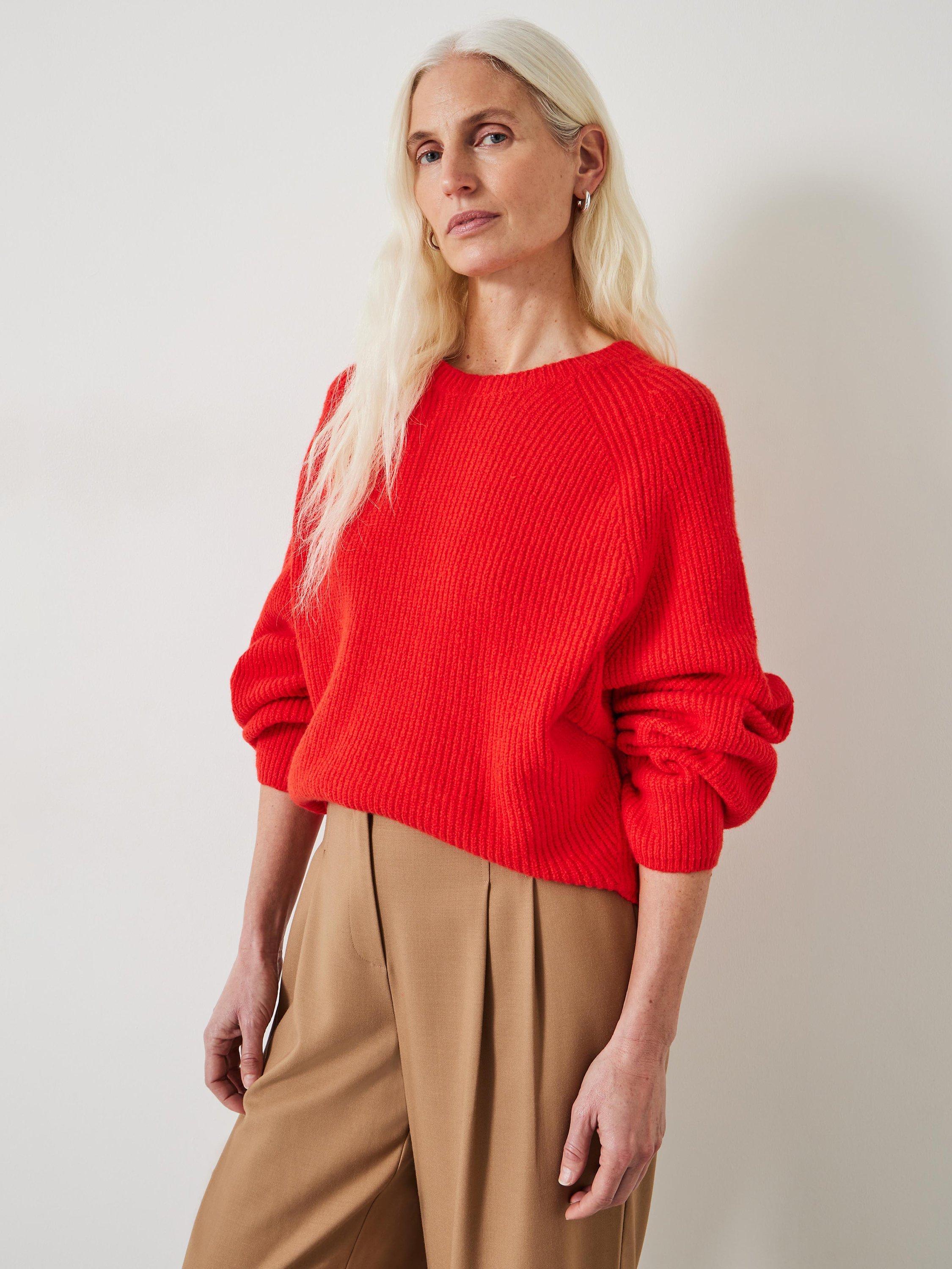 HUSH Tamar Deep Raglan Wool Blend Jumper Bright Red Very well made.