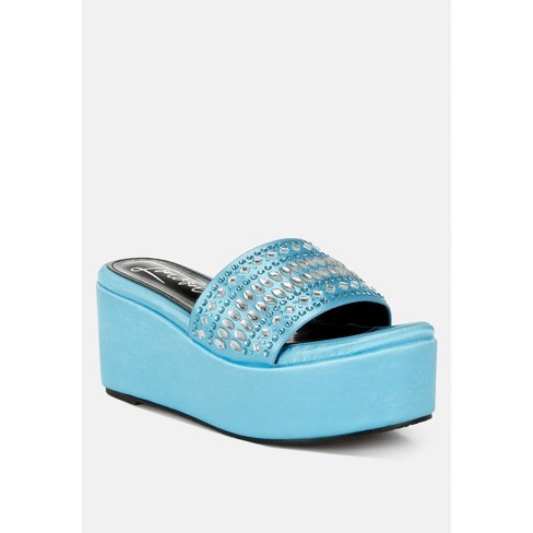London Rag Batanga Diamante Rhinestone Detail Stylish Flatforms Blue Size 9 Very well made.