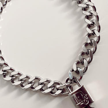 Vintage CHRISTIAN DIOR Padlock w Key ID Silver Plated Logo Moonstone Vintage Los Angeles CA Very well made.