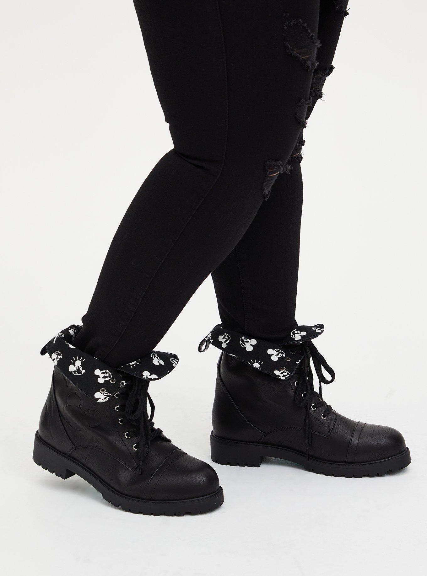 Plus Size Disney Mickey Black Faux Leather Foldover Combat Boot WW Torrid Very well made.