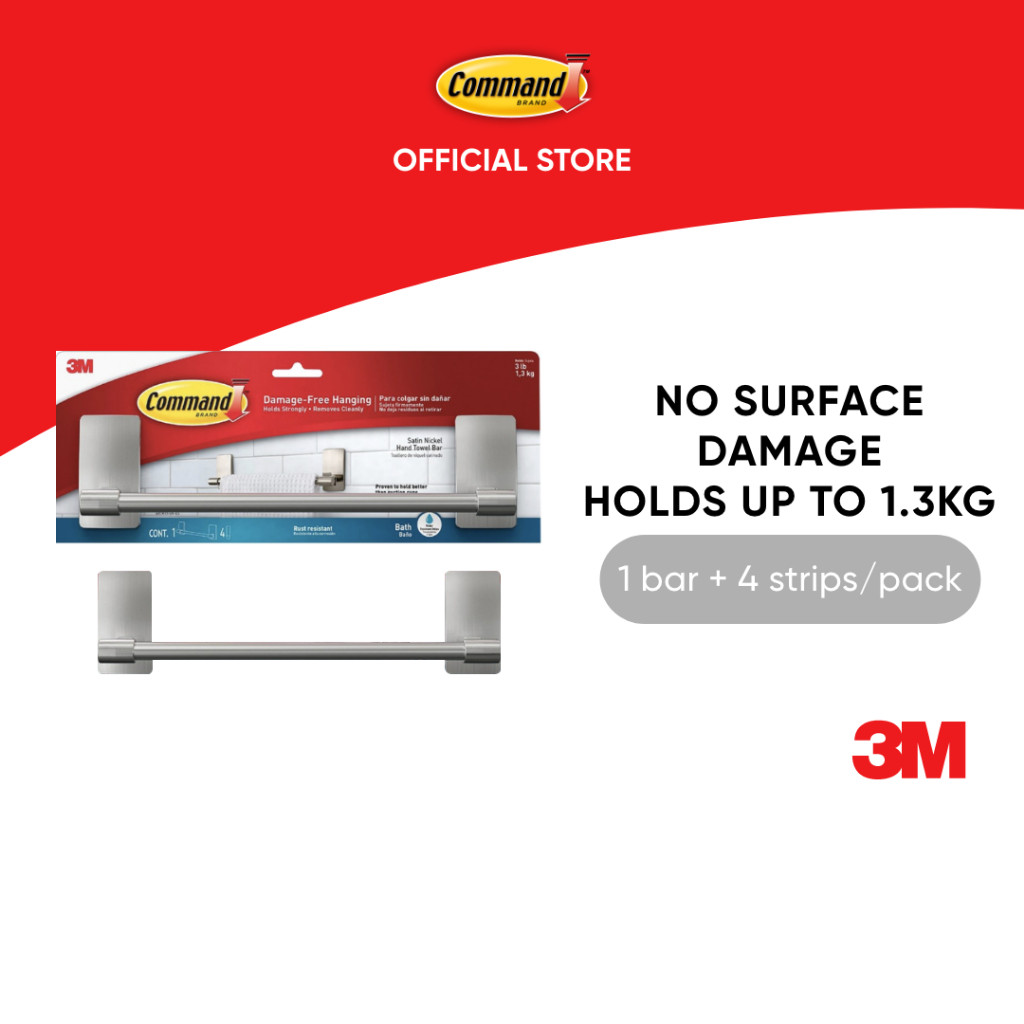3M Command Satin Nickel Hand Towel Bar BATH41 SN ES Water Resistant No Surface Damage 1 pc pack For bathroom Shopee Singapore Very well made.