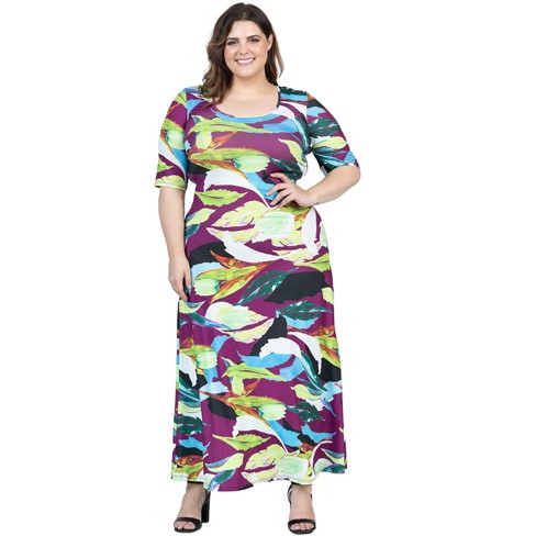 24seven Comfort Apparel Plus Size Multicolor Floral Print Elbow Sleeve Casual A Line Maxi Dress Target Very well made.