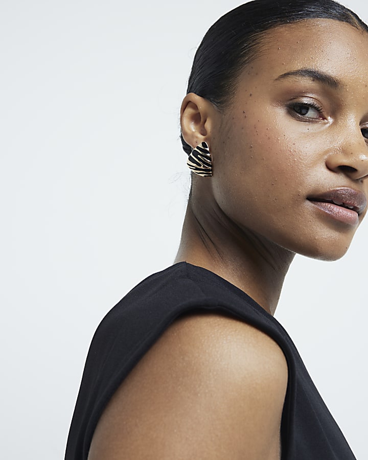 Black Gold Tone Heart Enamel Stud Earrings Very well made.