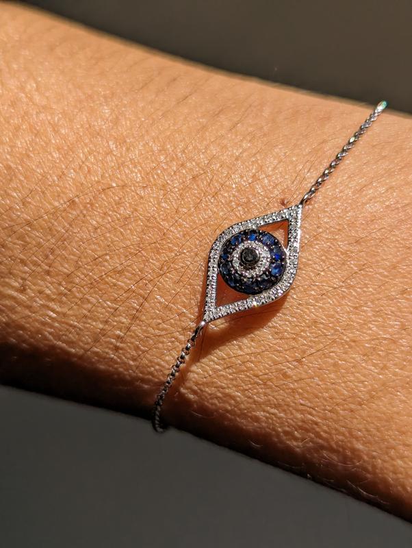 EFFY Sapphire 1 4 ct. t.w. and Diamond 1 6 ct. t.w. Evil Eye Bracelet in 14k White Gold Also Available In 14k Yellow Gold Macy s Very well made.