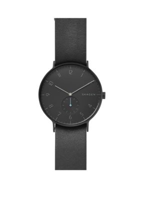 Skagen Aaren Black and Gray Reversible Leather Watch belk Very well made.