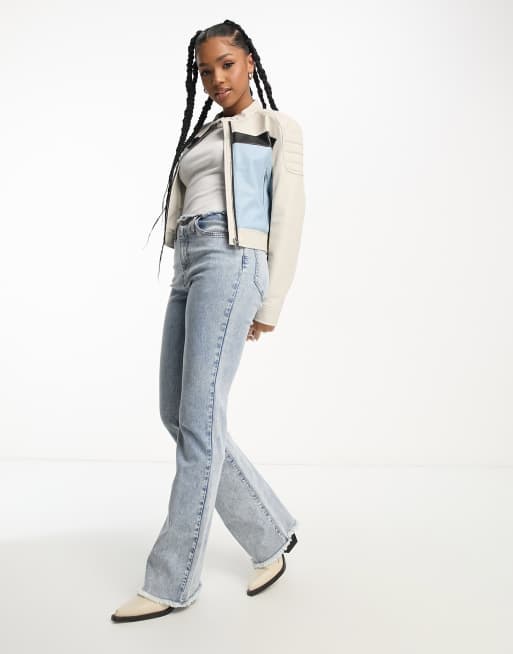 Stradivarius faux leather miami biker jacket in white blue Very well made.