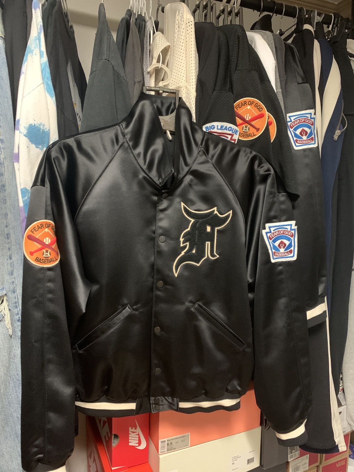 Fear of God Satin Manuel Baseball Coaches Jacket in Black FWRD Very well made.