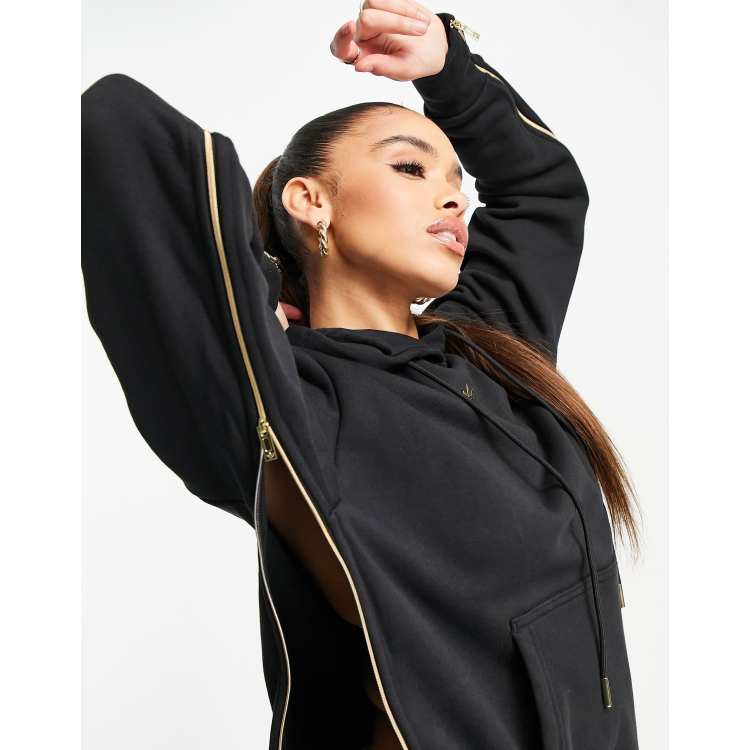 adidas Originals Felpa con cappuccio nera con logo oro e zip ASOS Very well made.