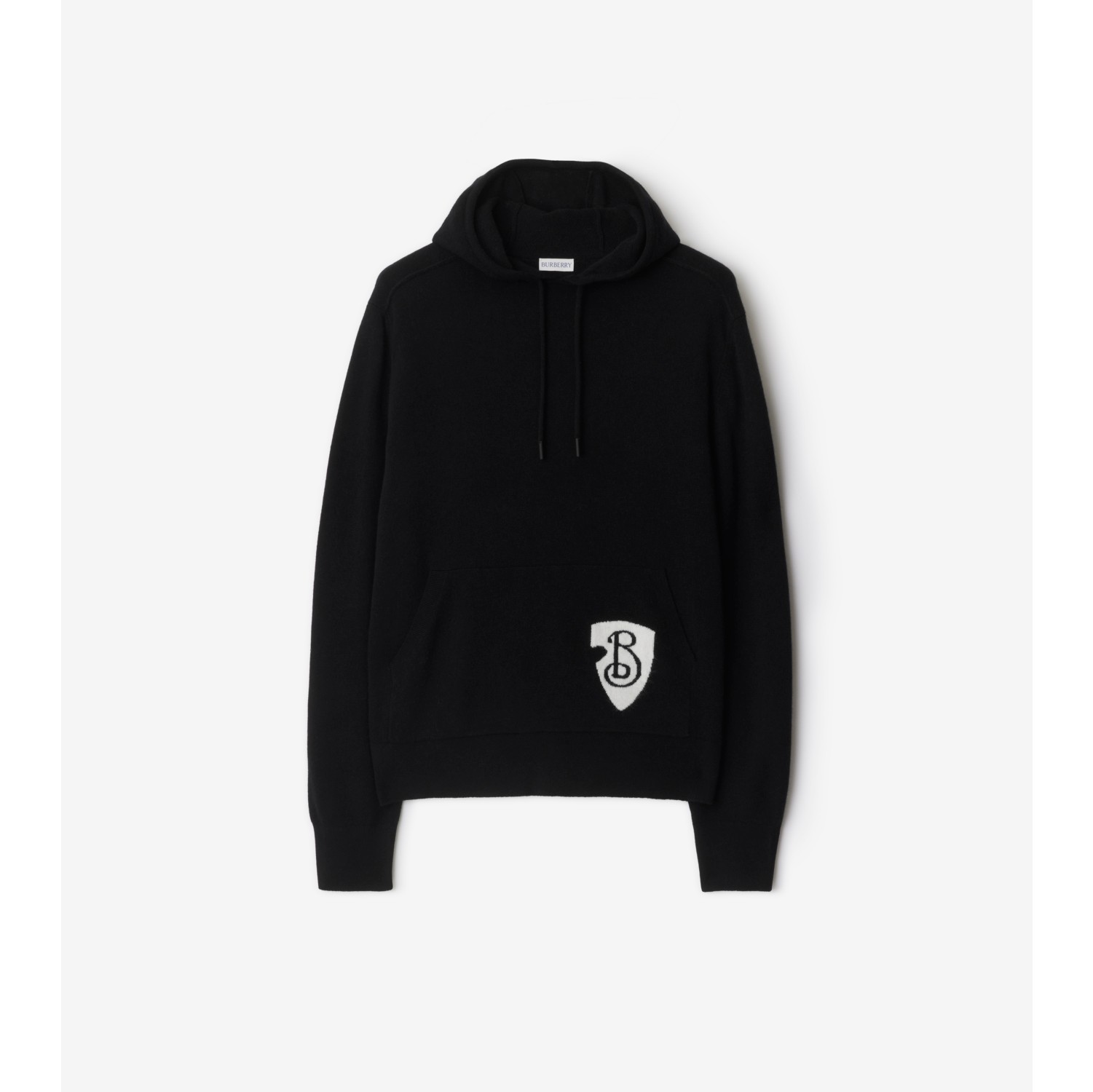 Felpa con cappuccio in misto lana con B Shield Nero Uomo Sito ufficiale Burberry Very well made.
