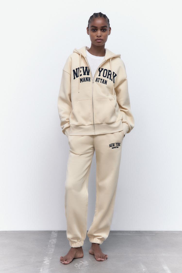 FELPA CON CAPPUCCIO CON SCRITTA RICAMATA Ecru ZARA Italia Italy Very well made.