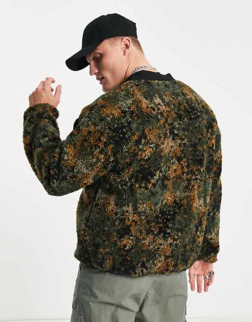 Levi s Felpa in pile borg verde con stampa mimetica a pois e cerniera lampo corta ASOS Very well made.