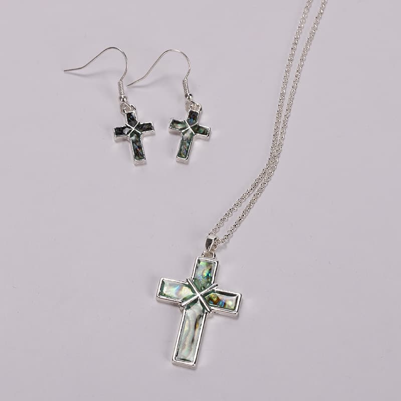 Silver Abalone Cross Necklace and Earring Set Cracker Barrel Very well made.
