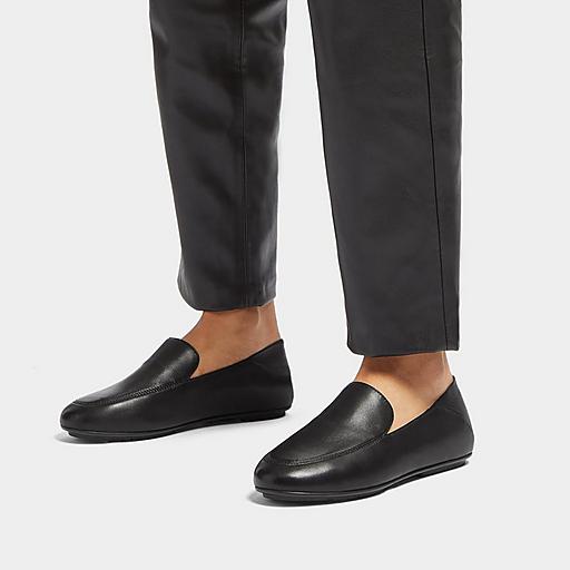 Fitflop Women s ALLEGRO Crush Back Leather Loafers All Black Size CA 9 Very well made.