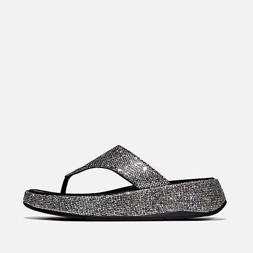 Fitflop Women s F MODE Glitterball Flatform Toe Post Sandals Silver Size CA 8 Leather Polyester Elastic Very well made.