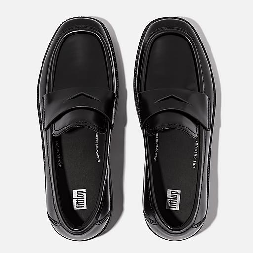 Fitflop Women s F LUMA Box Leather Demi Wedge Penny Loafers Black Size CA 8 Very well made.