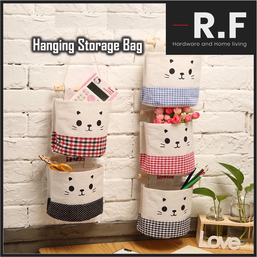 Wall Door Hanging Organizer Cotton Canvas Cute Cat Storage Bag Pocket Pouch Multipurpose Stacking Wooden Pole Shopee Malaysia Very well made.