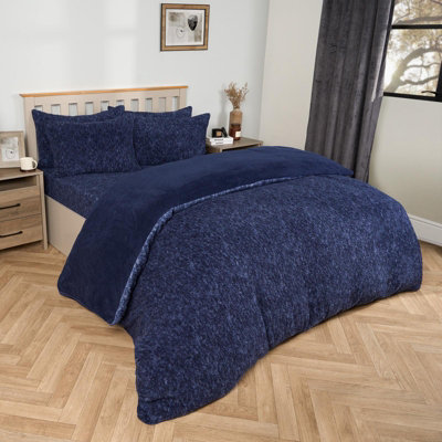 Teddy Fleece Duvet Cover Bedding Set Marl Pillowcase Dark Blue King DIY at B Q Very well made.
