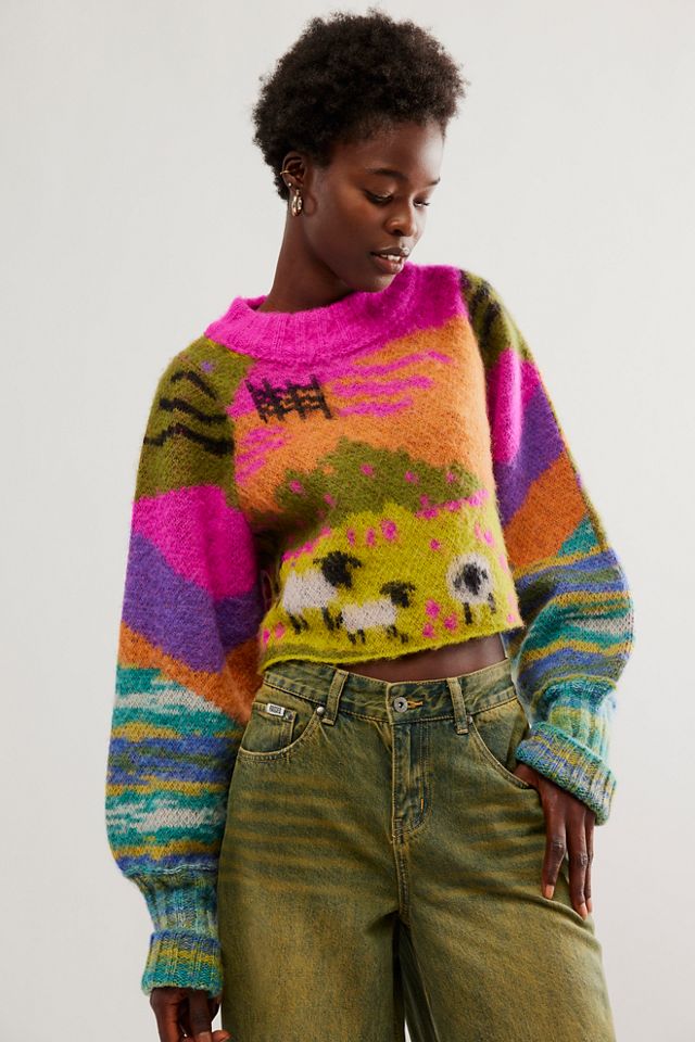 1970s Cropped Rainbow Sweater Selected by Cherry Free People Very well made.