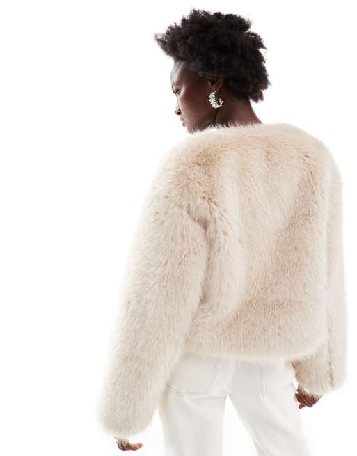 4th Reckless cropped faux fur pocket detail jacket in beige ASOS Very well made.