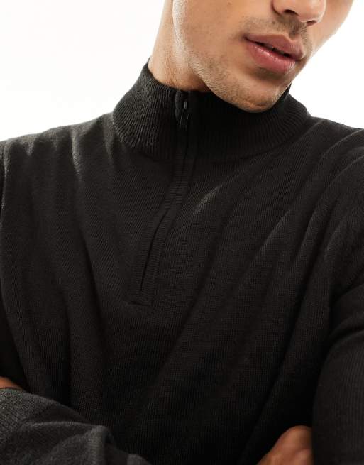 Threadbare soft touch half zip funnel neck jumper in black Very well made.