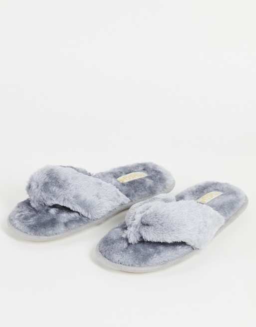 Truffle Collection fluffy toe post slippers in grey Very well made.