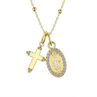 Gratitude Grace 14k Gold Plated Crystal Cross Virgin Mary Pendant Necklace Very well made.