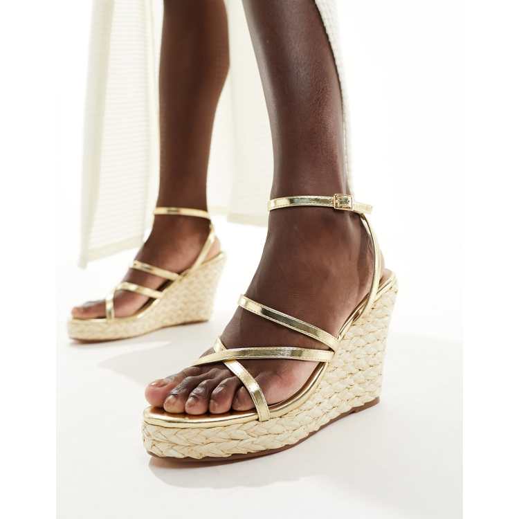 ASOS DESIGN Tiptoe cross strap espadrille wedges in gold Very well made.