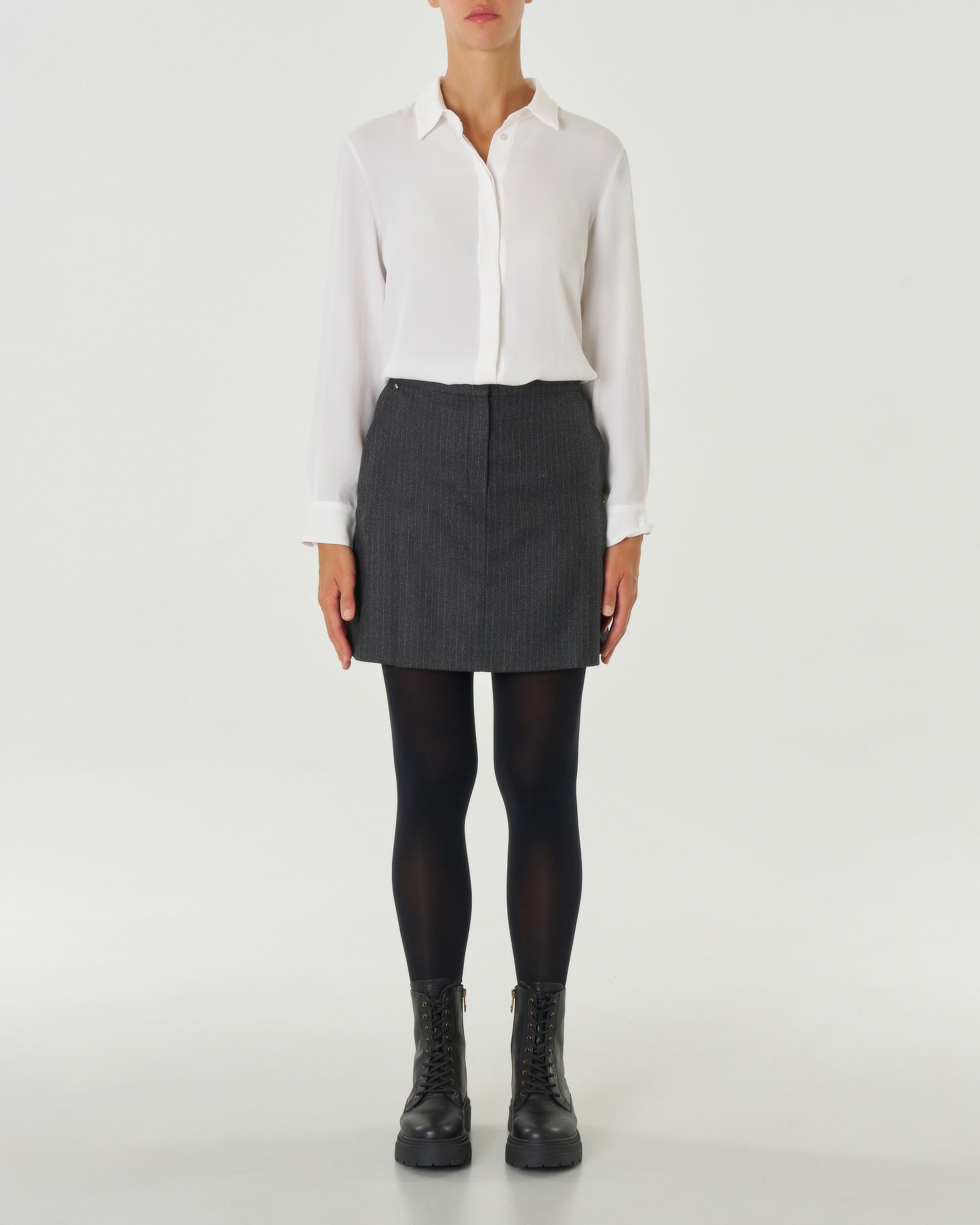 Gonna corta grigia in misto lana a motivo gessato bianco Very well made.