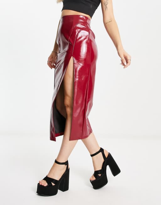 ASOS DESIGN Gonna midi in vinile rossa con spacco ASOS Very well made.