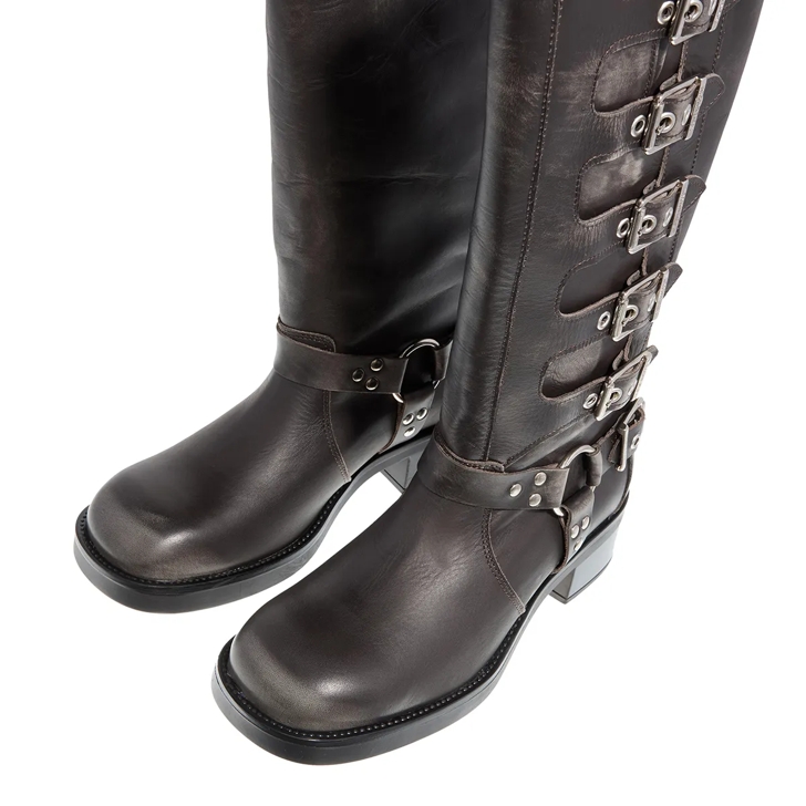 Steve Madden Battle Dark Grey Leather Boot Very well made.