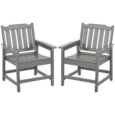Outsunny 2 Pcs Patio Chairs With Armrests Slatted Back Outdoor Armchair Gray Very well made.