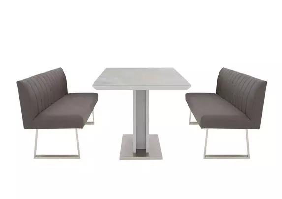 Grigio Fixed Dining Table and 2 High Back Benches Dining Set Furniture Village Very well made.