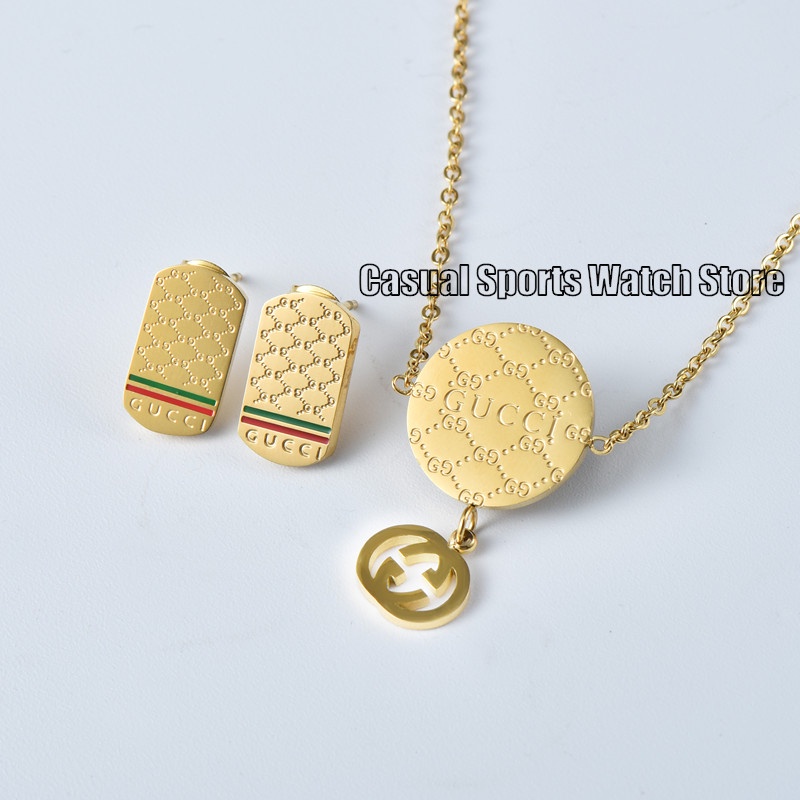 GUCCI Earrings And Necklace For Women Ring Bangle For Women Men Jewelry Set Original Stainless Gold Very well made.
