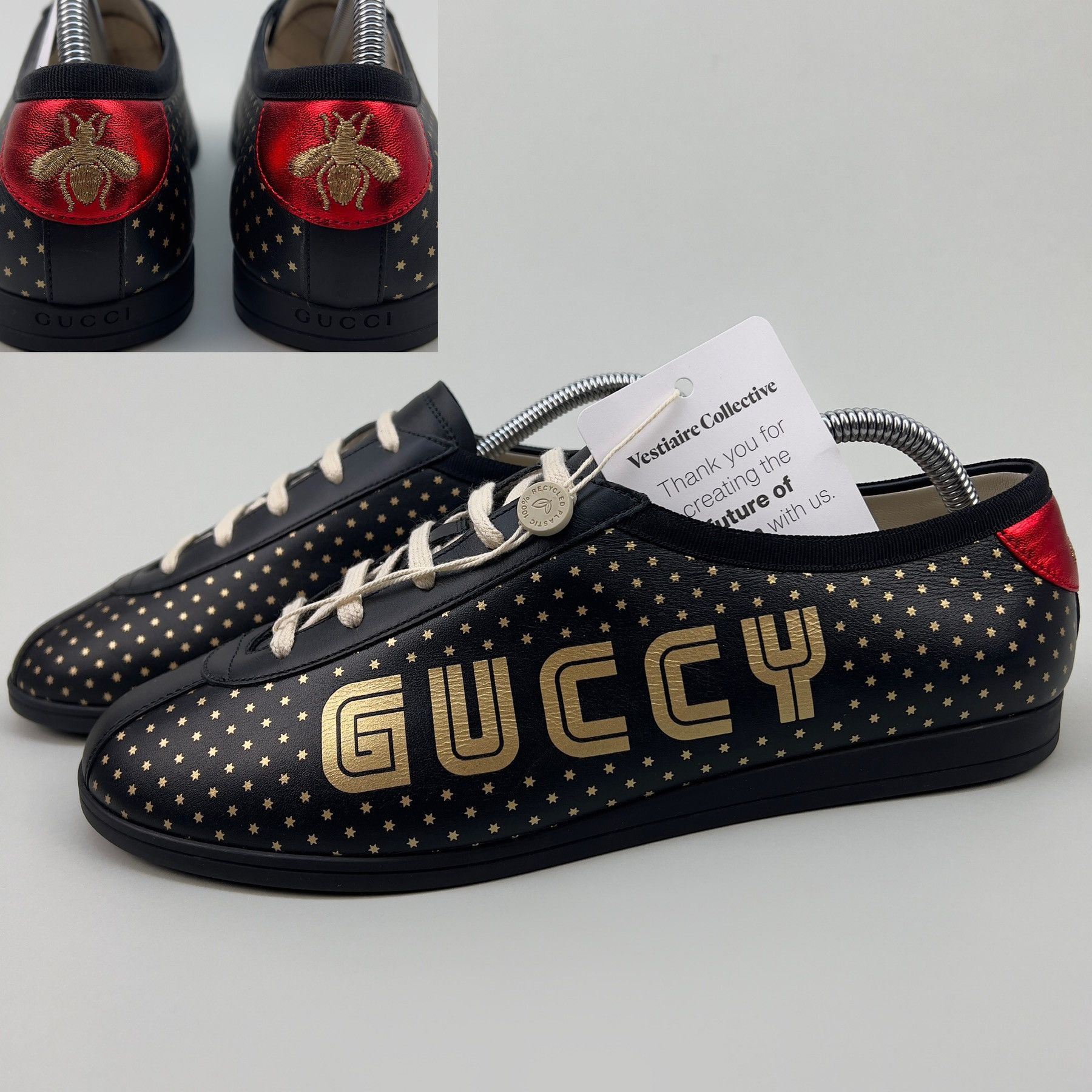 GUCCI WOMEN S ACE LOW GOLD GUCCY PRINT LEATHER SNEAKERS SHOES 6.5 36.5 820 SALE eBay Very well made.